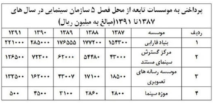 سیاهه مالی سازمان سینمایی در دولت احمدی نژاد!